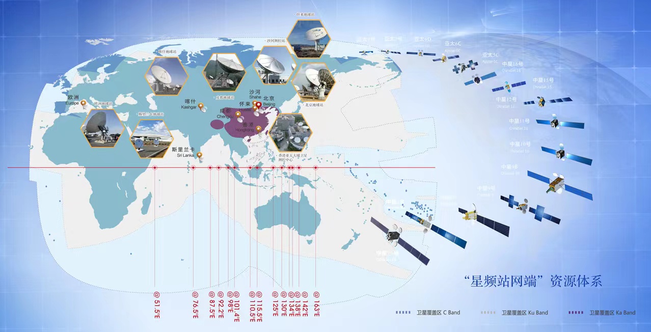 面向境內外廣電、電信、政府、各行各業及個人用戶,提供C、Ku、Ka等多種頻段的廣播電視、衛星通信、轉發器資源出租出售及相關應用業務。